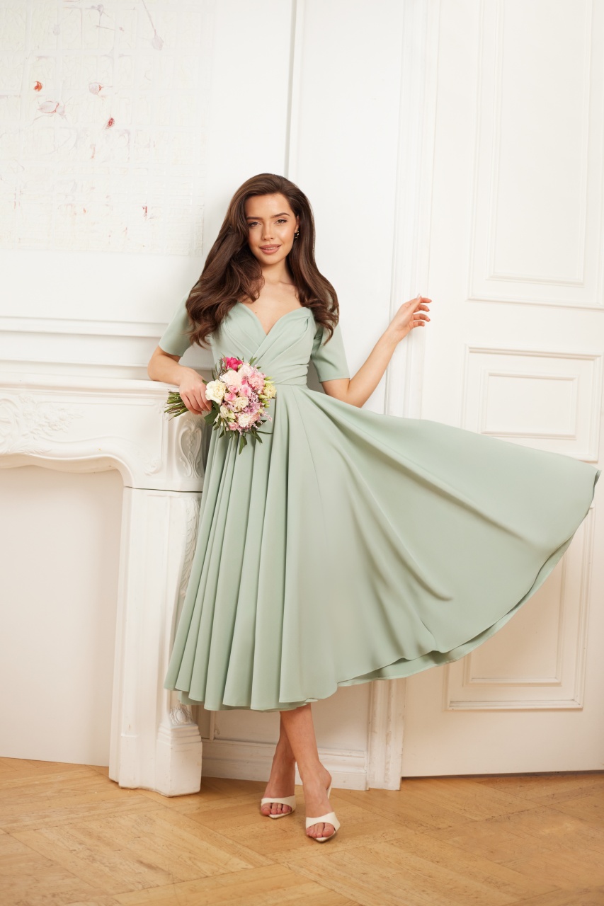 ALEKSANDRA — elegancka sukienka midi z drapowanym dekoltem