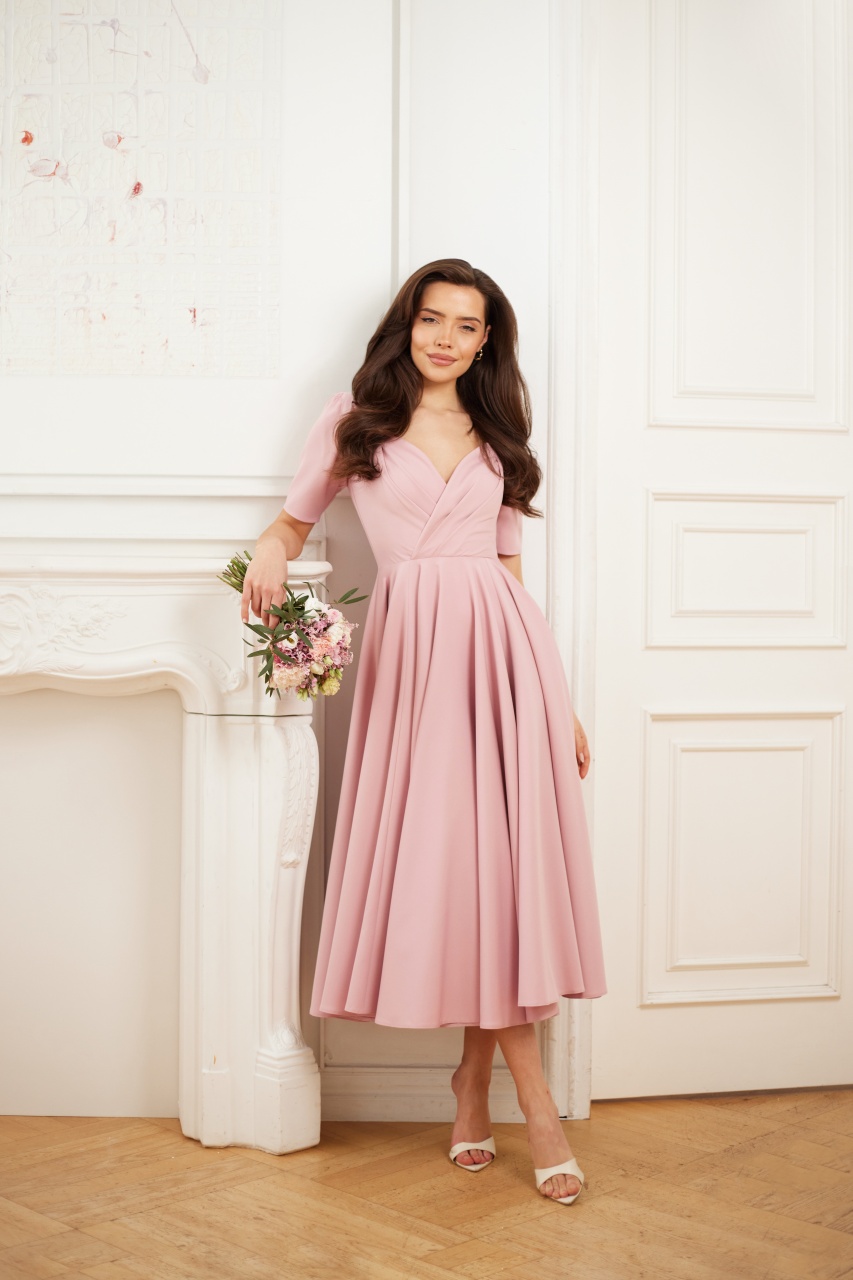 ALEKSANDRA — elegancka sukienka midi z drapowanym dekoltem