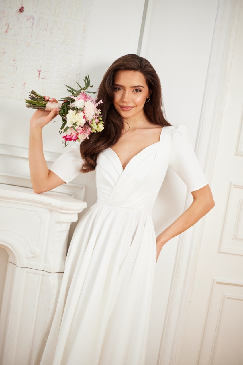 Sukienka szyta w województwie lubelskim w lokalnych pracowniach. Dbamy o każdy detal, a nasze produkty przechodzą dokładną kontrolę jakości na każdym etapie szycia. Możliwa tolerancja wymiarów: +/- 1,5 cm.