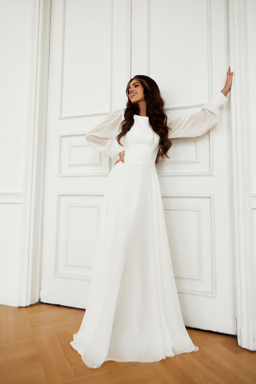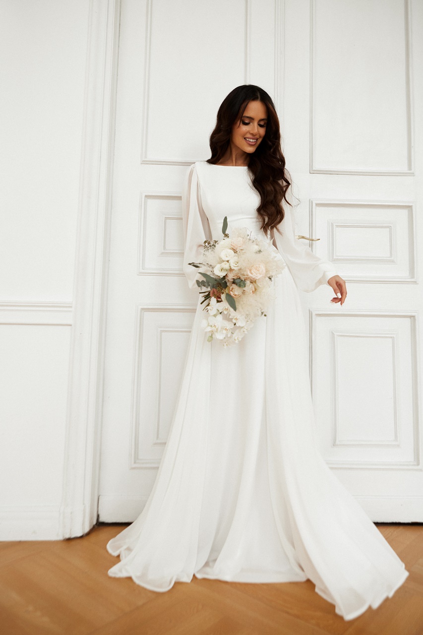 Szyfonowa, zwiewna sukienka maxi z rękawem. Dół uszyty z pełnego