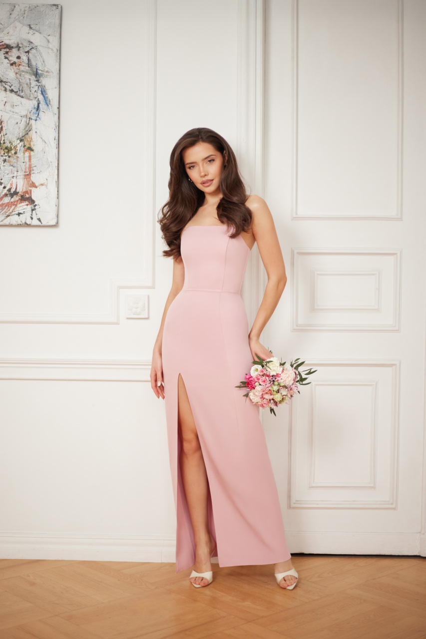 Model AMELIA to ponadczasowa, elegancka forma, która pięknie podkreśla kobiecą sylwetkę. Dopasowany krój modeluje figurę, a rozporek na prawej nodze dodaje lekkości i subtelnej zmysłowości, zapewniając jednocześnie swobodę ruchu. Usztywniony gorset stabilnie podtrzymuje biust i akcentuje talię, tworząc harmonijną, kobiecą linię. To idealna propozycja na wesela, wieczorne przyjęcia i wyjątkowe okazje.