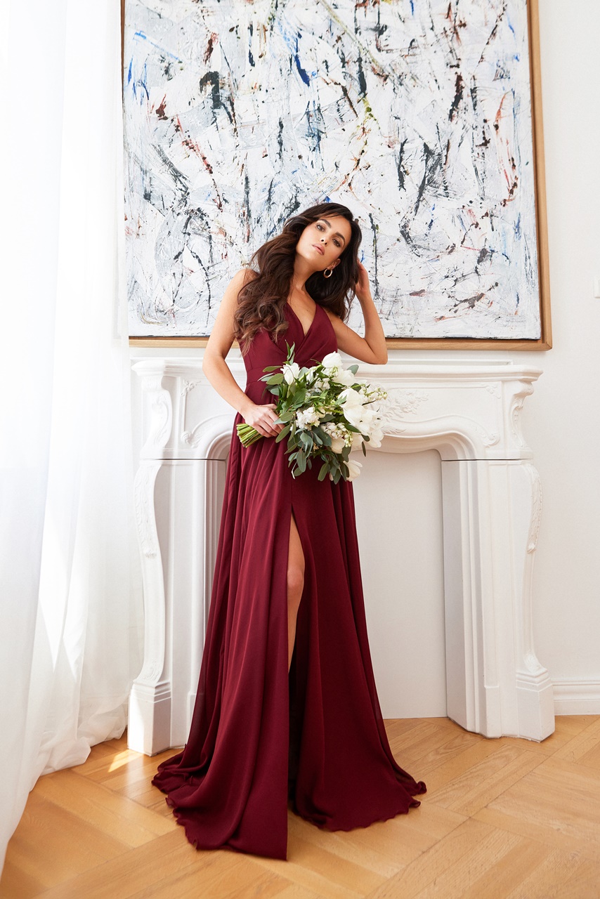 • Zwiewna suknia z wysokiej jakości szyfonu – lekka, przewiewna i niegniotąca się.