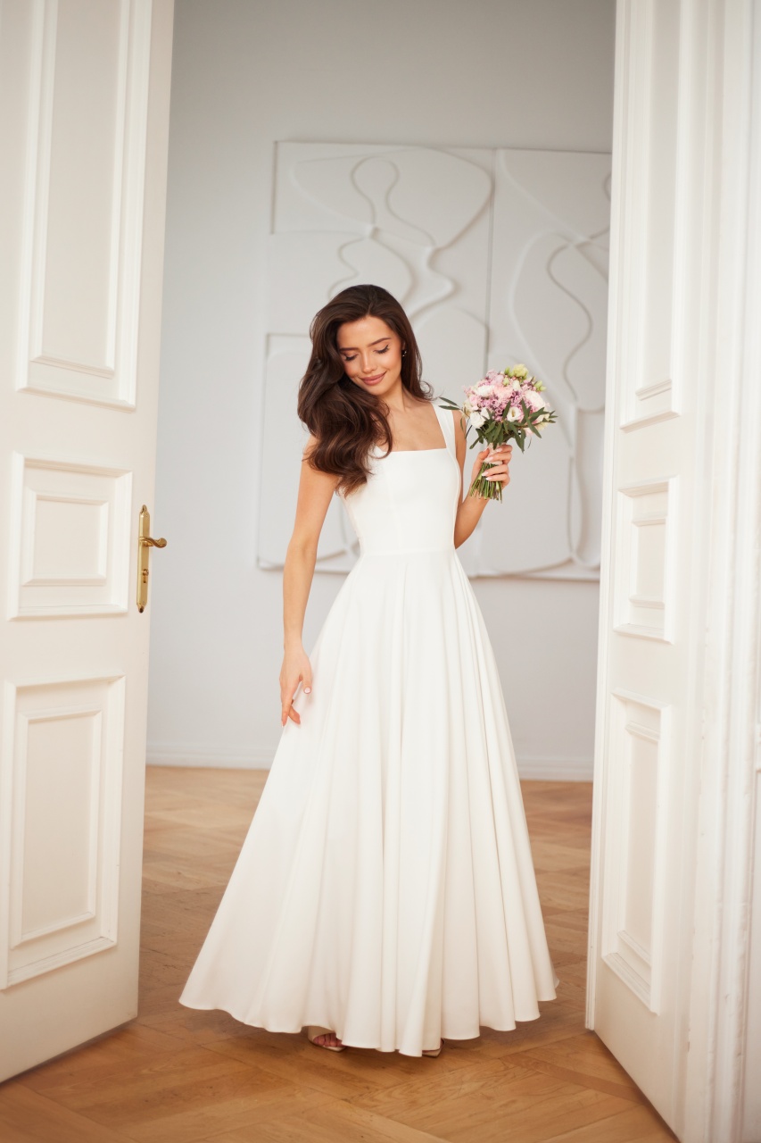 Maxi długość dodaje powagi i szyku – idealna zarówno na ślub kościelny, jak i ceremonię plenerową.