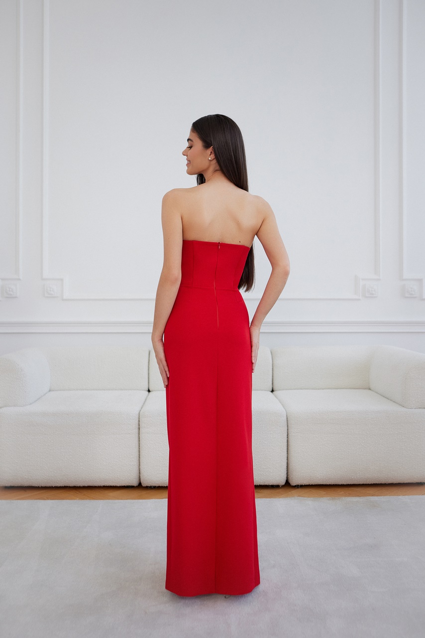 Suknia gorsetowa - usztywniona płótnem oraz fiszbinami. Kryty zamek z tyłu sukienki.