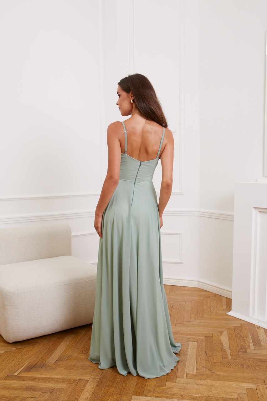 • Zwiewna suknia z wysokiej jakości szyfonu – lekka, przewiewna i niegniotąca się.