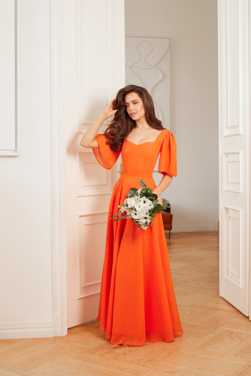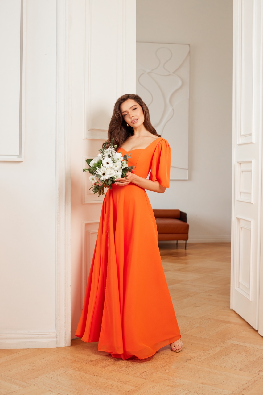 JULIA - pomarańczowa zwiewna sukienka na wesele