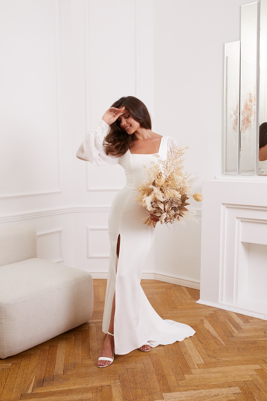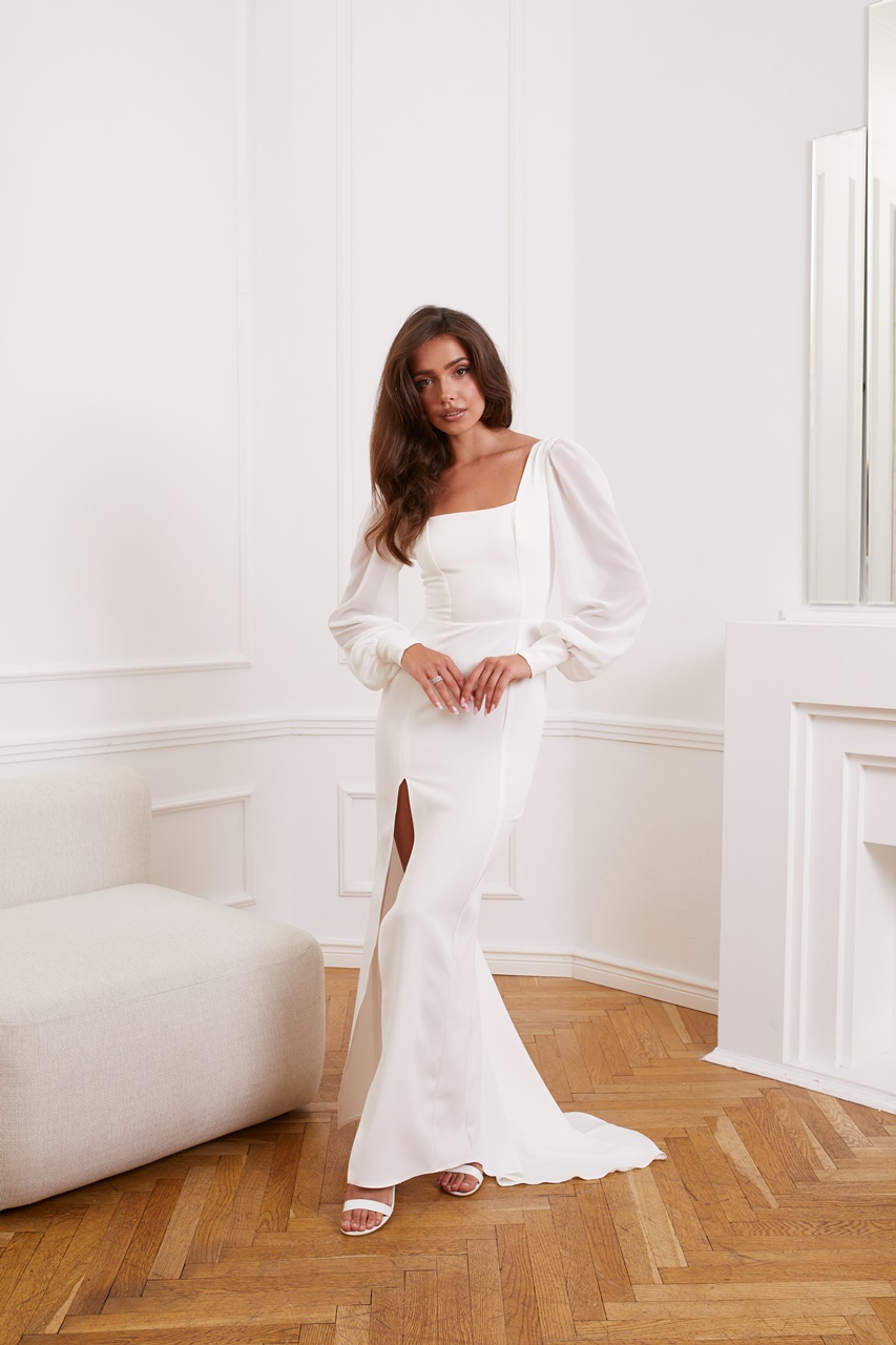 Suknia szyta jest w województwie lubelskim w lokalnych pracowniach. Dbamy o każdy szczegół, a nasze produkty przechodzą dokładną kontrolę jakości na każdym etapie szycia. Ze względu na indywidualne wykonanie dopuszczamy tolerancję wymiarów +/- 1,5 cm.