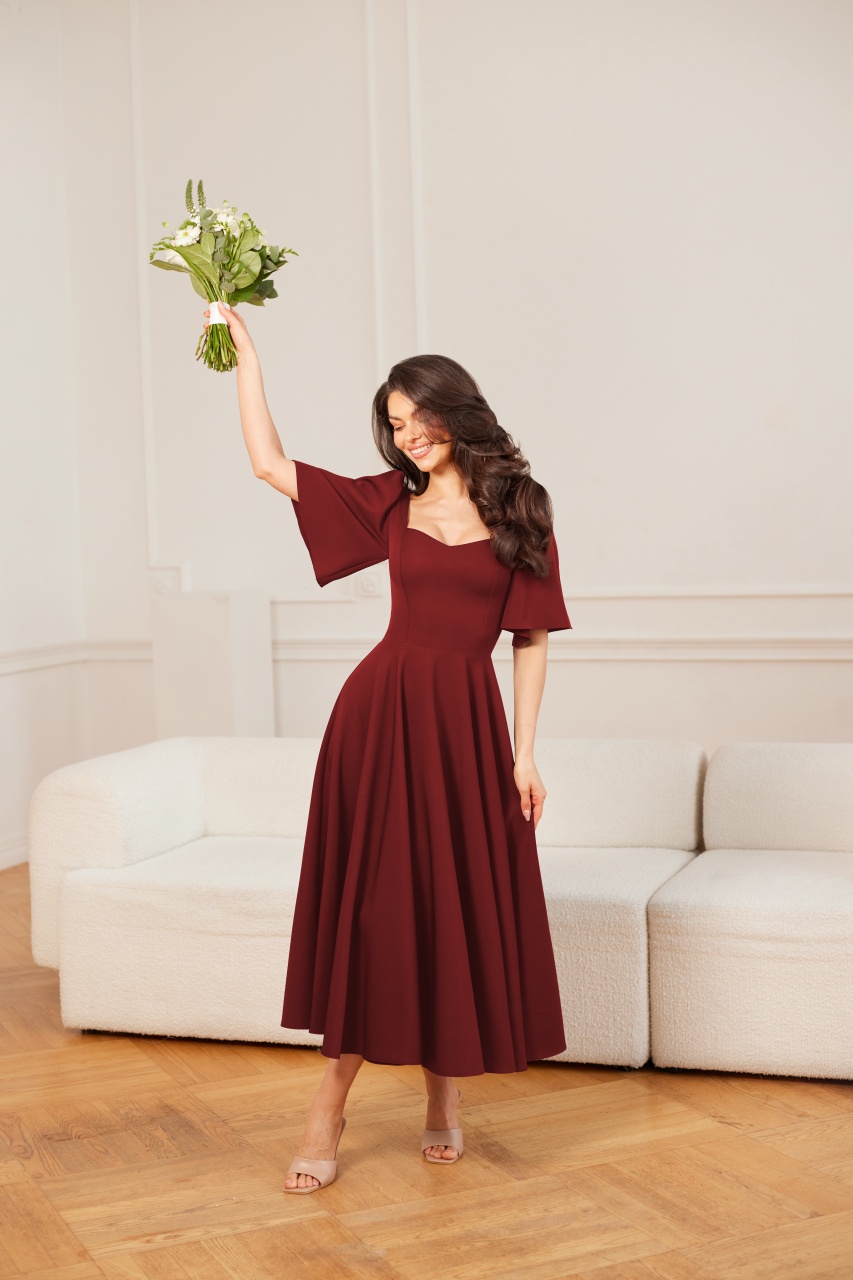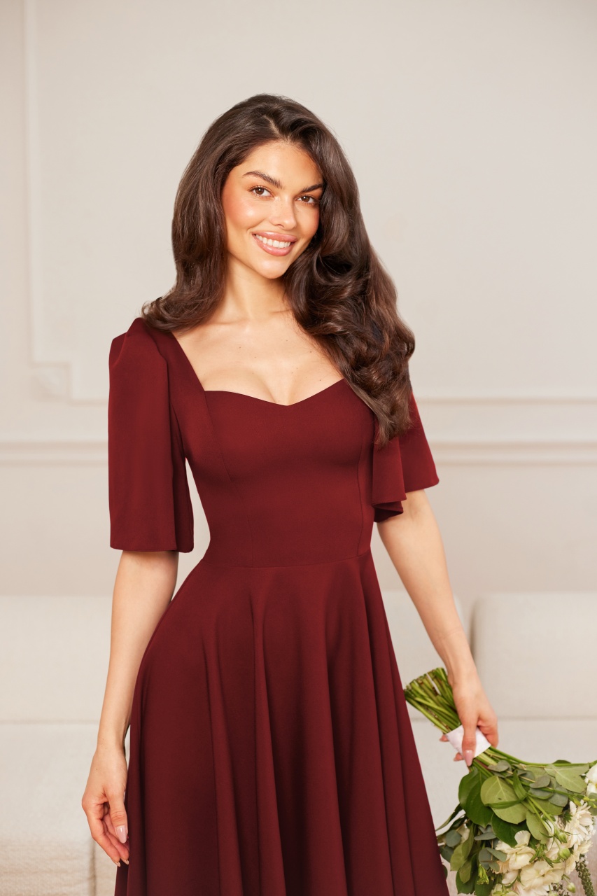 Model MADELINE to subtelna i kobieca propozycja, która doskonale sprawdzi się na komunie i inne eleganckie uroczystości. Delikatny dekolt pięknie podkreśla linię biustu, nadając sylwetce lekkości i harmonii. Zwiewny rękawek dodaje całości dziewczęcego uroku, a długość midi podkreśla klasyczny, ponadczasowy charakter sukienki. To model, który łączy wygodę z elegancją, idealny na ważne rodzinne chwile.