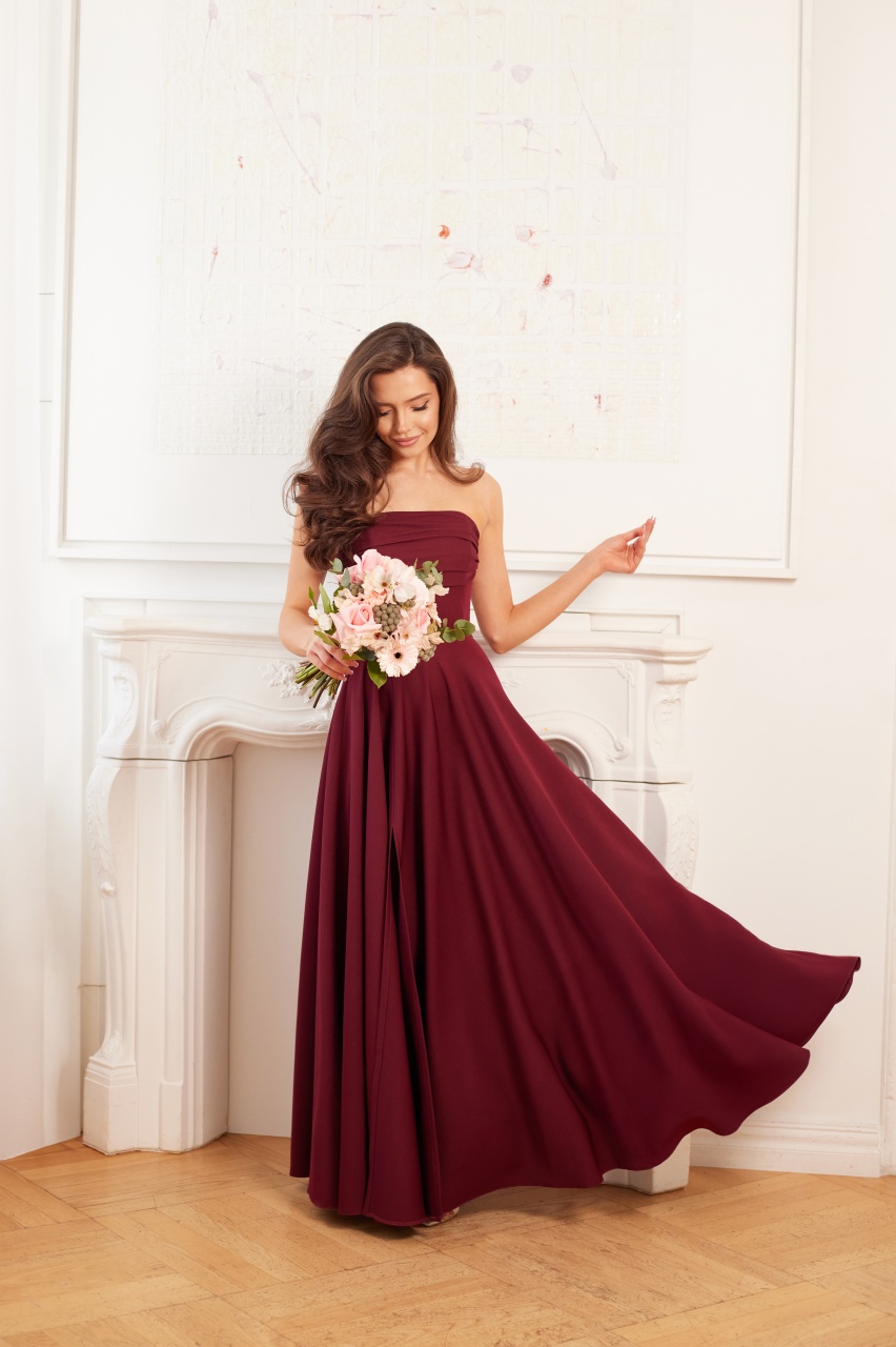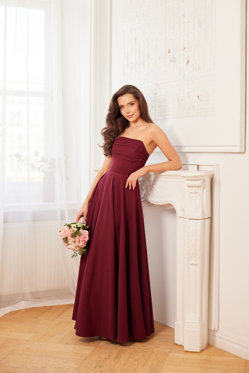MIA - bordowa sukienka na wesele z gorsetem