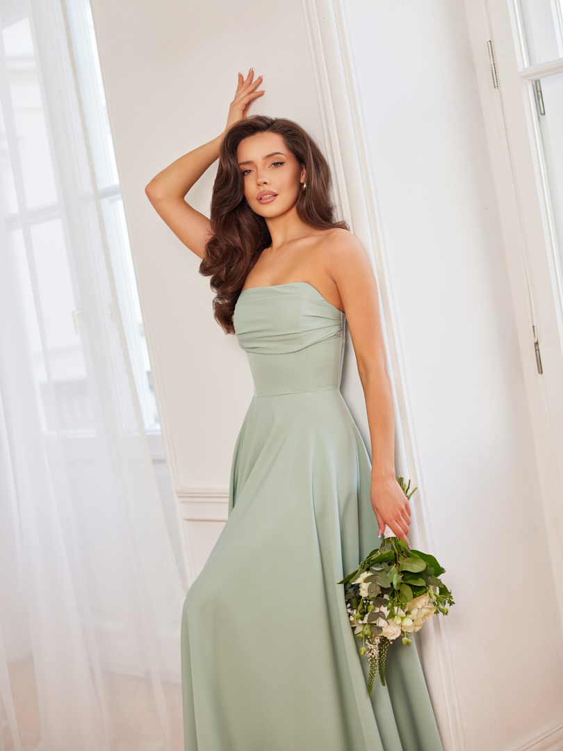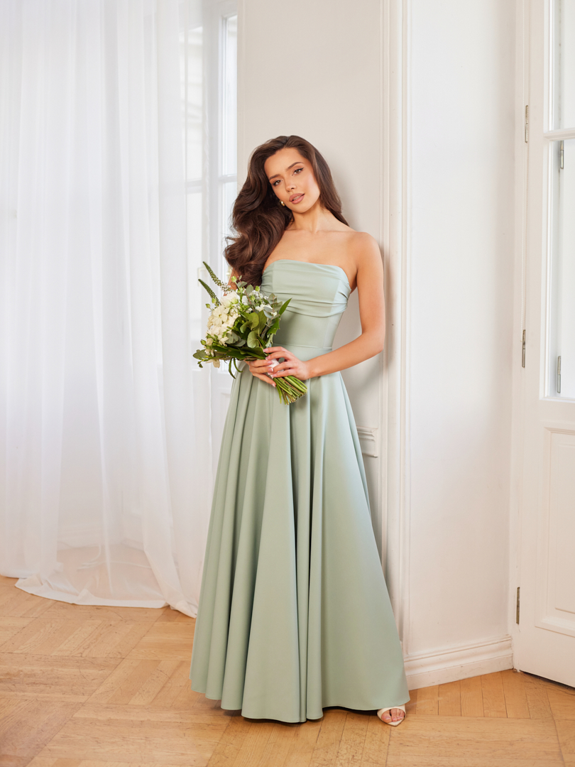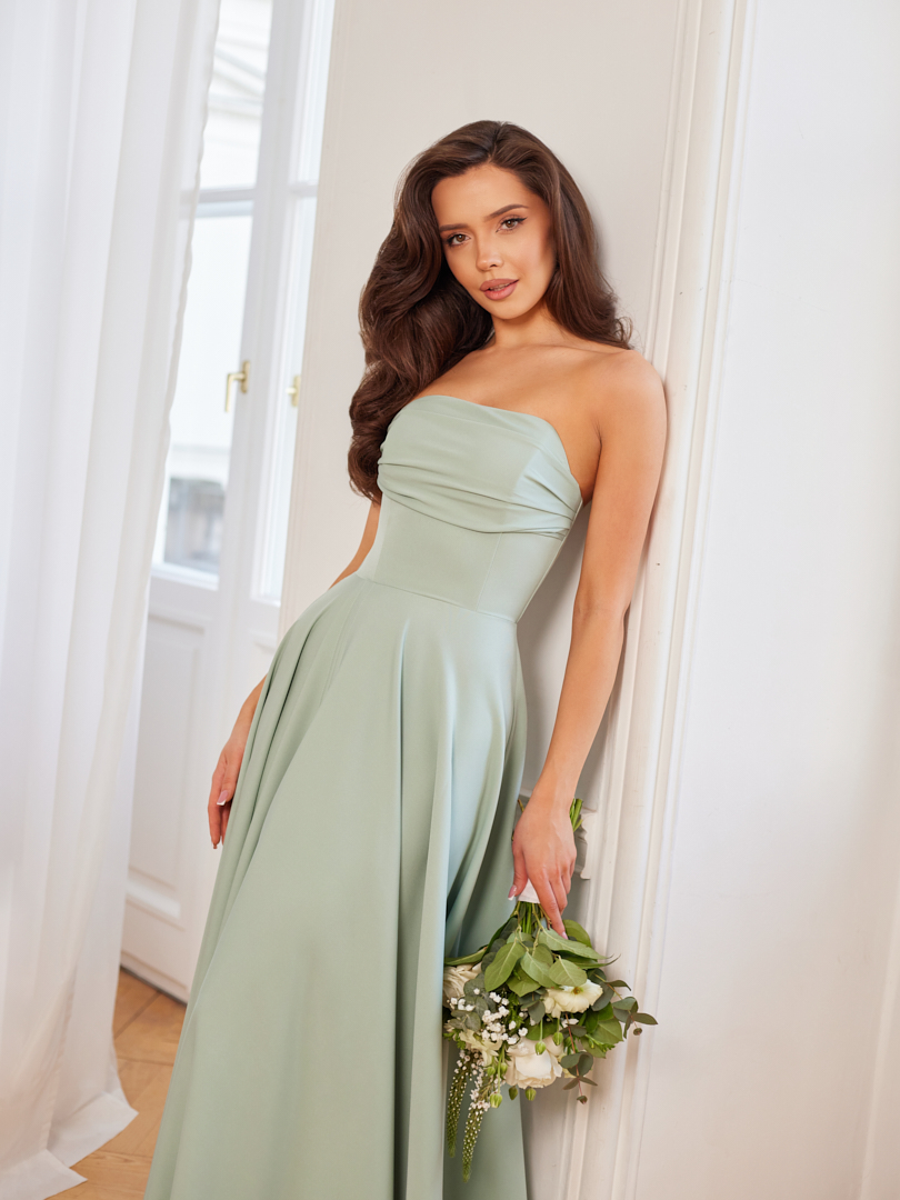 Model MIA to propozycja dla kobiet, które cenią elegancję i wyrazisty, a jednocześnie ponadczasowy styl. Konstrukcja sukienki pięknie podkreśla sylwetkę, a spódnica z pełnego koła tworzy spektakularny efekt w ruchu, dodając lekkości i szyku. Draperie na biuście nadają całości charakteru i subtelnie modelują górną partię sylwetki. To idealny wybór na wesela, uroczyste przyjęcia i wyjątkowe okazje.