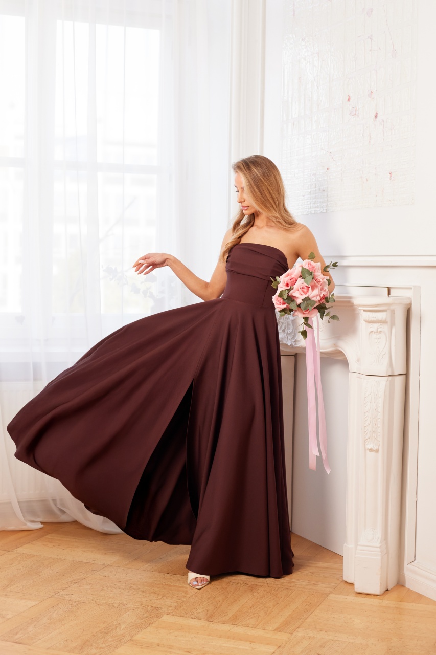 MIA - gorsetowa sukienka drapowana z rozporkiem w kolorze czekolady