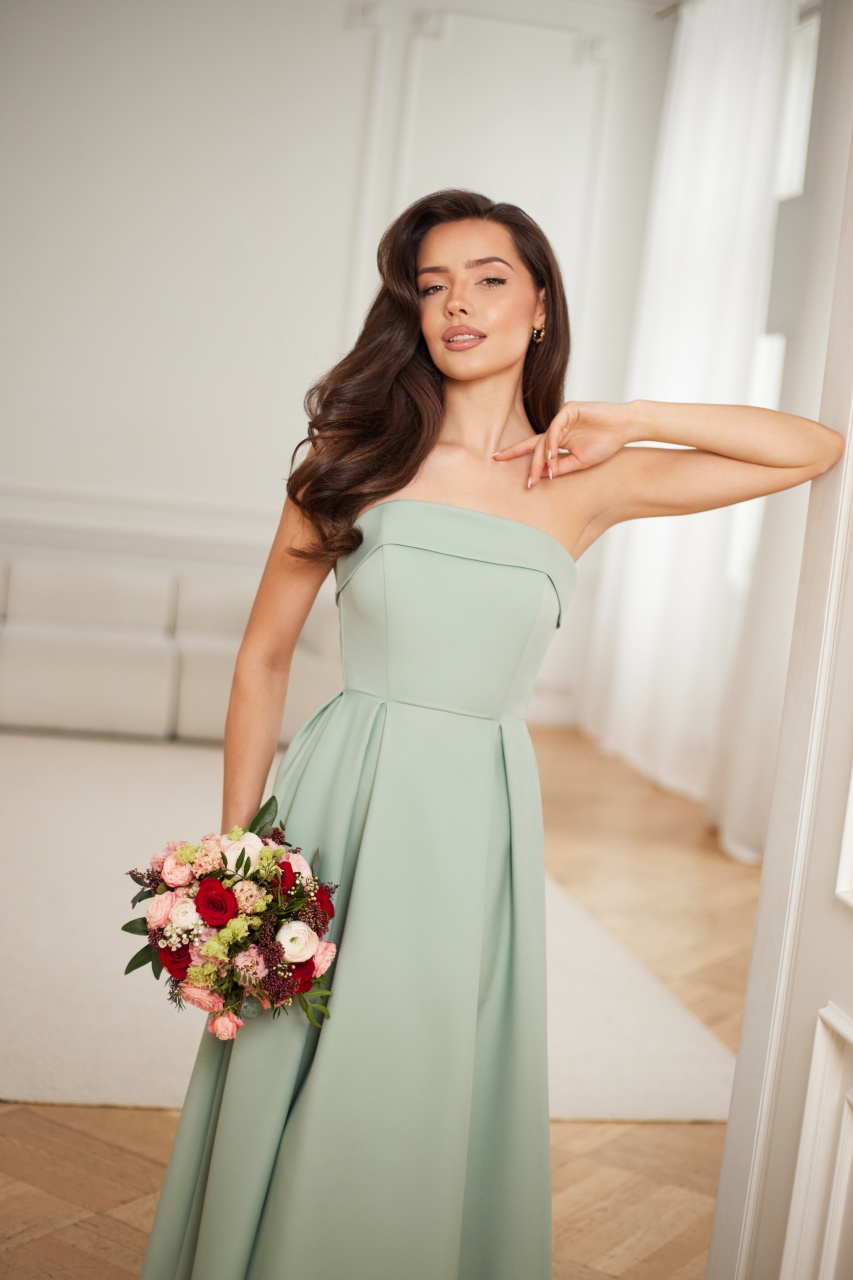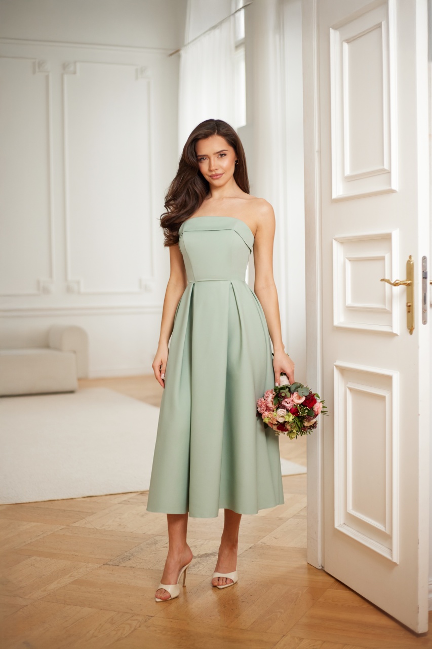 Model OCTAVIA został zaprojektowany z myślą o podkreśleniu kobiecej sylwetki i zapewnieniu komfortu noszenia przez cały dzień i wieczór. Starannie dopracowany krój pięknie modeluje figurę, a delikatna zakładka w górnej części subtelnie podkreśla linię biustu, nadając całości lekkości i elegancji. Zakładki na spódnicy tworzą harmonijną formę, która doskonale układa się w ruchu. To ponadczasowa propozycja idealna na przyjęcia, uroczystości rodzinne czy eleganckie wyjścia.