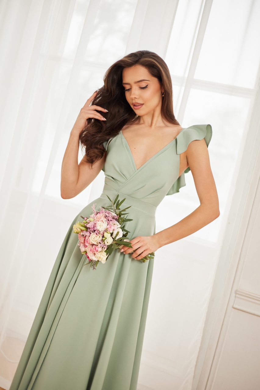 ROZALIA  - długa suknia na regulowanych ramiączkach z rozporkiem i falbanką