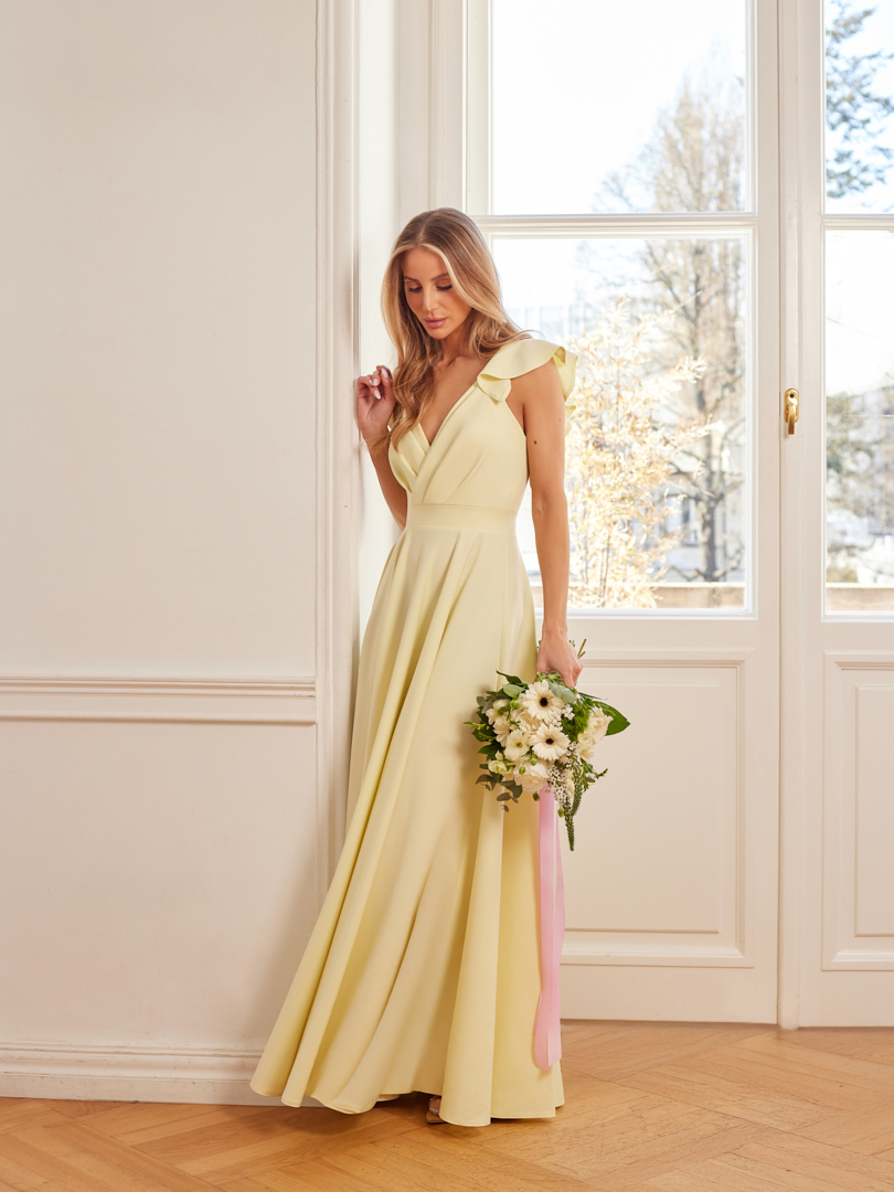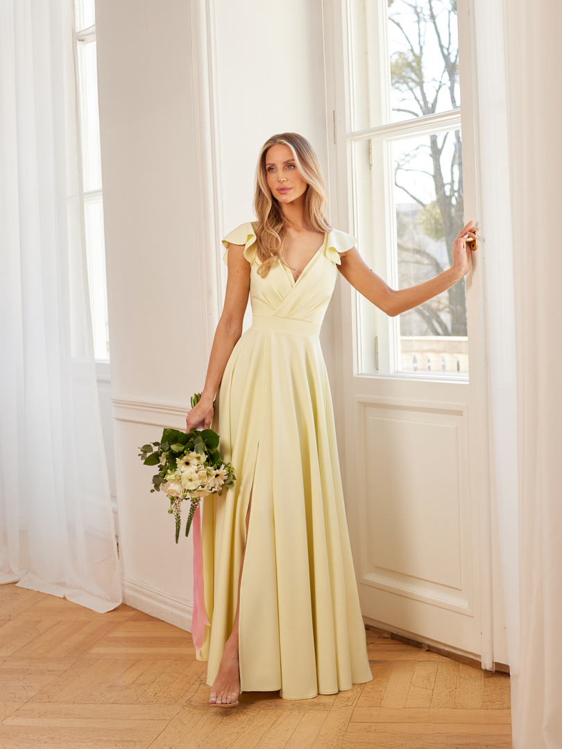 ROZALIA - efektowna suknia z falbanami na ramionach